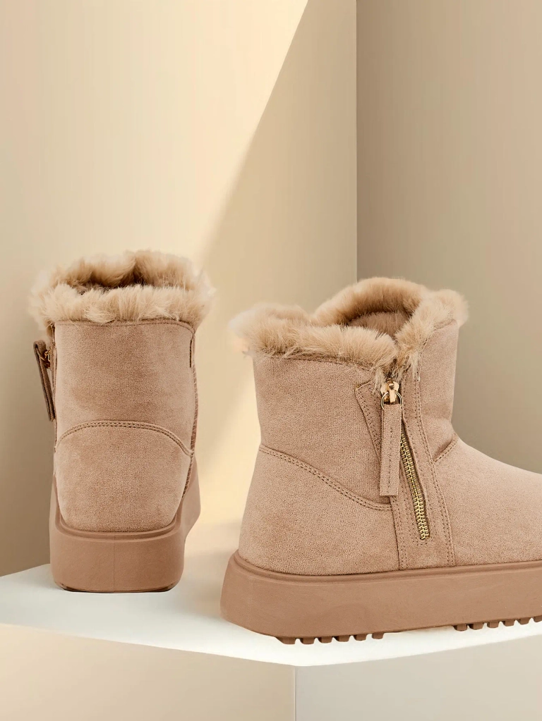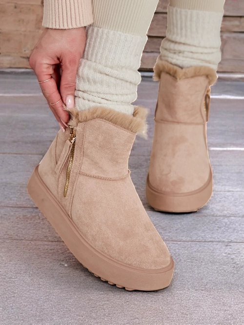 - Skvělé ženské zimní sněhové boty na platformě. Horní část je vyrobena z umělého semiše, vyloženého kožešinou. Ideální základ pro zimu!