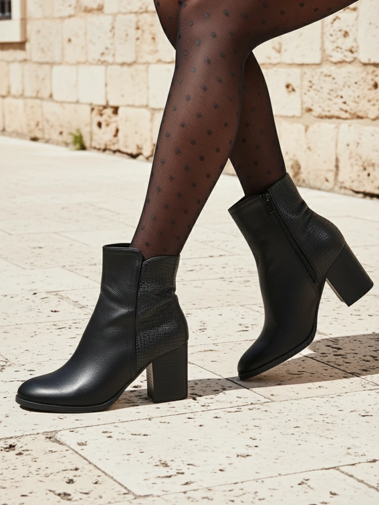 - Dámské kotníkové boty jsou ideálním řešením pro chladnější dny. Falešná kůže je upevněna zipem, uvnitř je falešná kůže stélka. Model na sloupku, s kulatou špičkou a dekorativním razítkem. Skvělý doplněk k vašim volným outfitům!