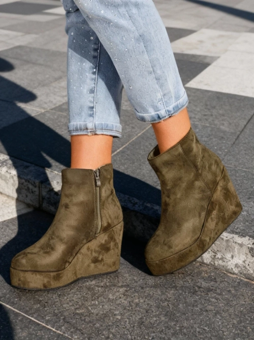 - Elegantní dámské kotníčkové kozačky vyrobené z ekosuede. Boty jsou vyplněny kožešinou uvnitř. Perfektní volba na podzim!