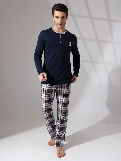 - Elegantní pánské pyžamo s unikátním potiskem a kostkovanými kalhotami. Vyrobeno z vysoce kvalitní bavlny, zaručuje pohodlný spánek a stylový vzhled. UPOZORNĚNÍ: Přesnost měření (+/-) 1 cm.