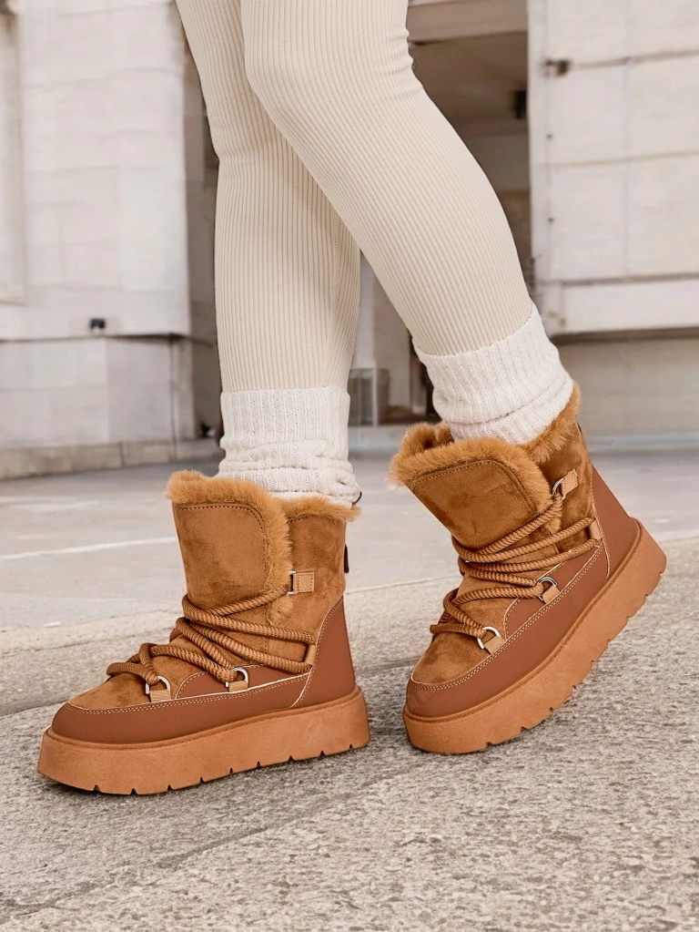 - Dámské sněhule se shankou vyrobenou z ekokoženého semiše. Vyložené příjemným kožíškem, šněrovací obuv. Skvělé na zimu!