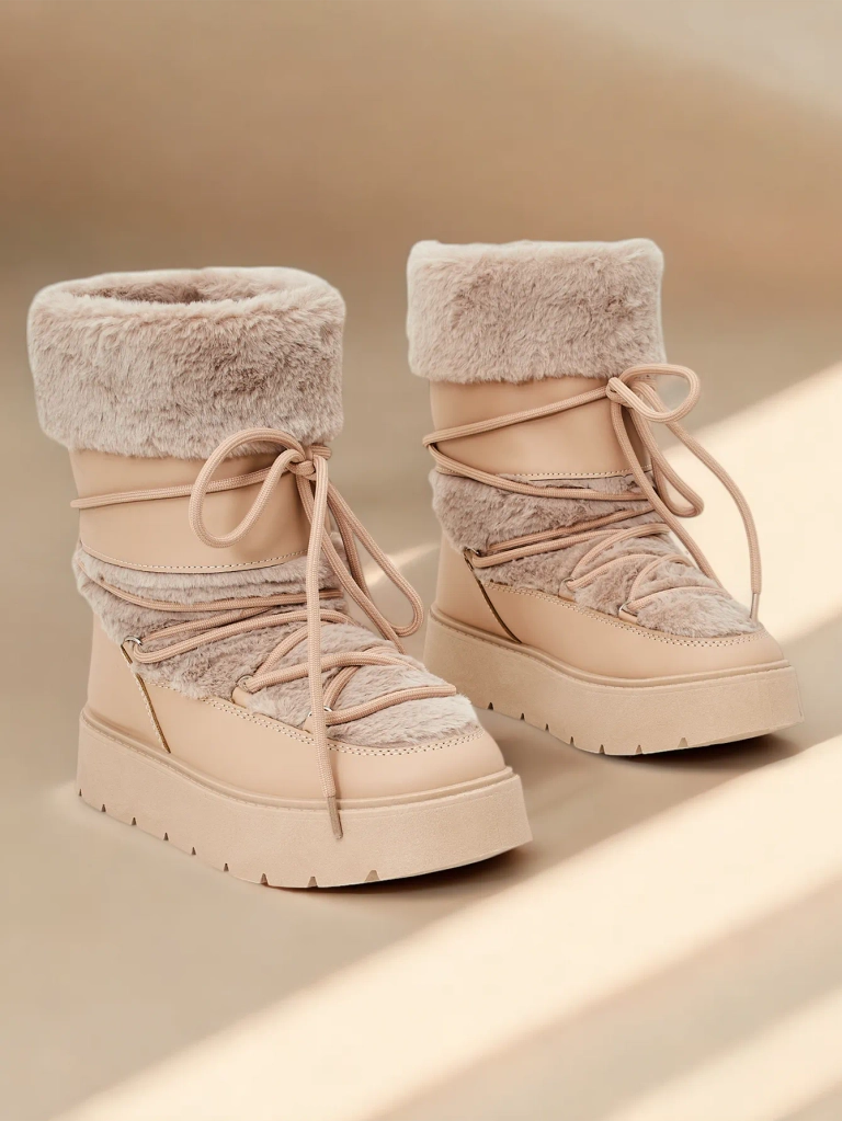 - Dámské sněhule s hřídelí vyrobenou z kombinace ekokůže a příjemné látky. Vevnitř je příjemné kožichové podšívka, obuv má šněrovací hřídel. Ideální na zimu!