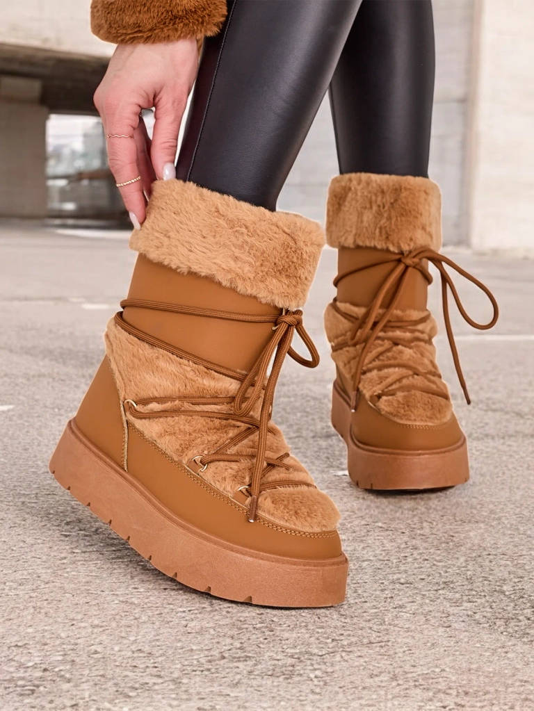 - Dámské sněhule s hřídelí vyrobenou z kombinace ekokůže a příjemné látky. Vevnitř je příjemné kožichové podšívka, obuv má šněrovací hřídel. Ideální na zimu!