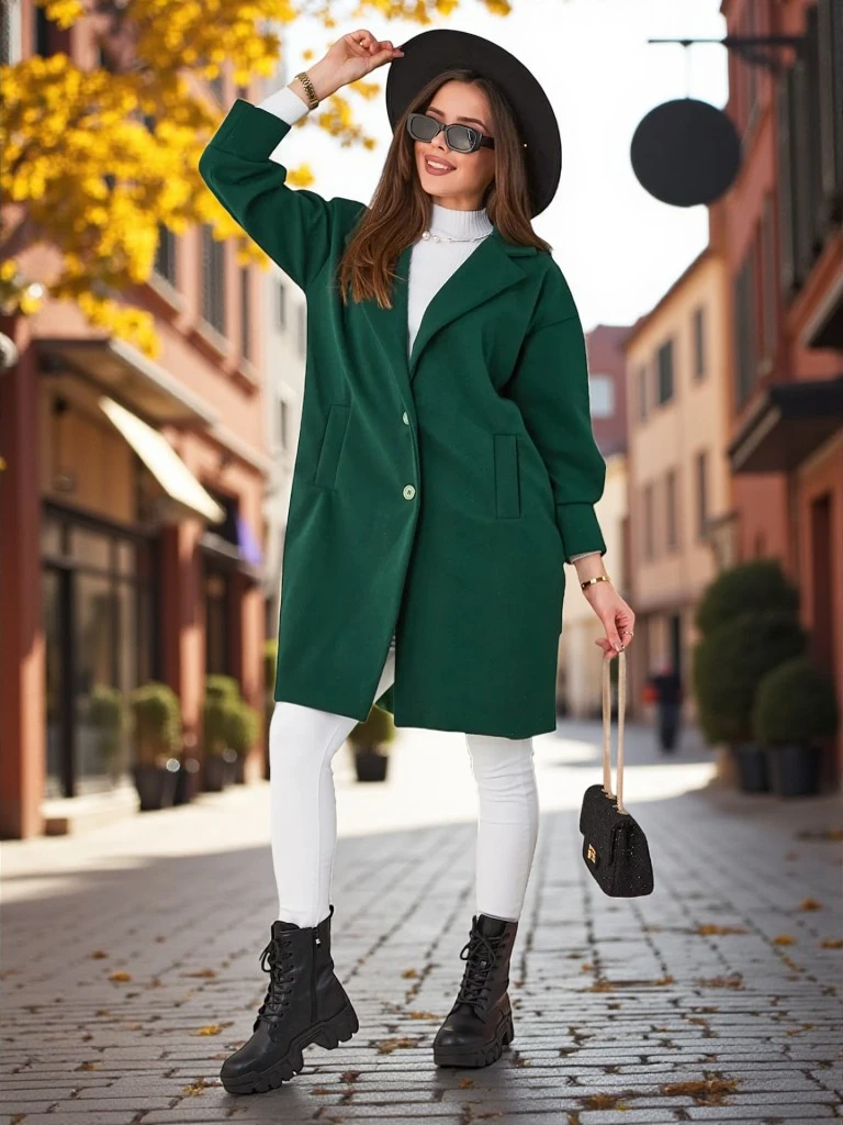 - Dámský kabát vyrobený z příjemného materiálu. Model má dlouhé rukávy a zapínání na knoflíky. Má podšívku. Ideální nabídka na podzim! POZNÁMKA: Přesnost měření (+/-) 1 cm. Rozměry jsou měřeny položené plochých.