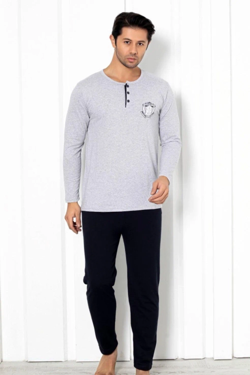 - Úžasné pánské pyžamo vyrobené z bavlněné tkaniny. Model má dlouhé rukávy a rovné nohavice. Pohodlí a elegance v jednom!