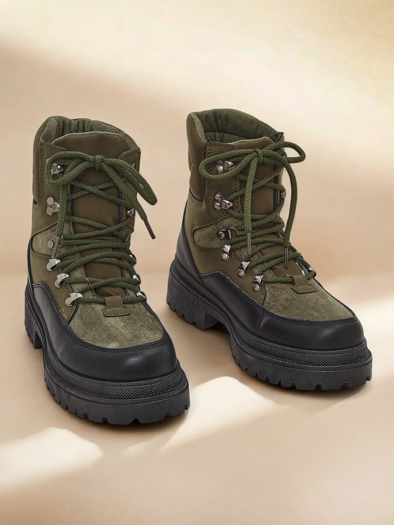 - Unikátní dámské traperky vyrobené z kombinace ekokože, matné ekokože a látky. Model má šněrovací hřídel. Vyplněné tlustější pěnou a látkou uvnitř. Speciální boty na špatné počasí!