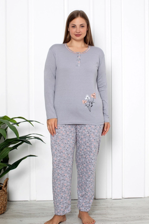 Royalfashion Bavlněné dámské 2-dílné květinové pyžamo VE VELIKOSTI PLUS