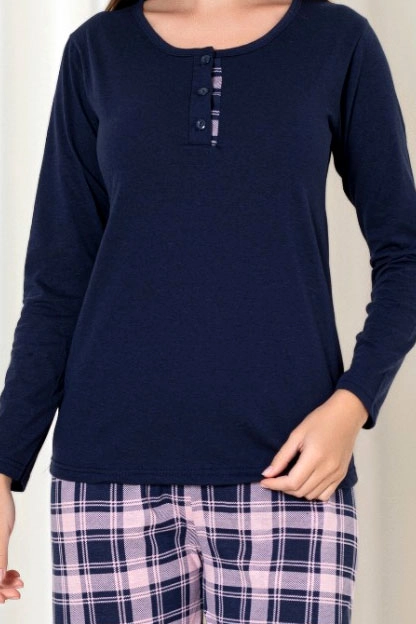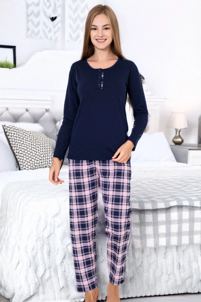 - Dvoudílná dámská souprava pyžam s dlouhými rukávy a dlouhými kalhotami, vyrobena z bavlněného materiálu. Model zdobený potiskem. Skvělé pro večery doma! UPOZORNĚNÍ: Přesnost měření (+/-) 1 cm.