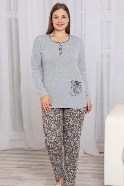 Royalfashion Šedé dámské dvoudílné pyžamo s leopardím vzorem NADROPNÍ VELIKOST