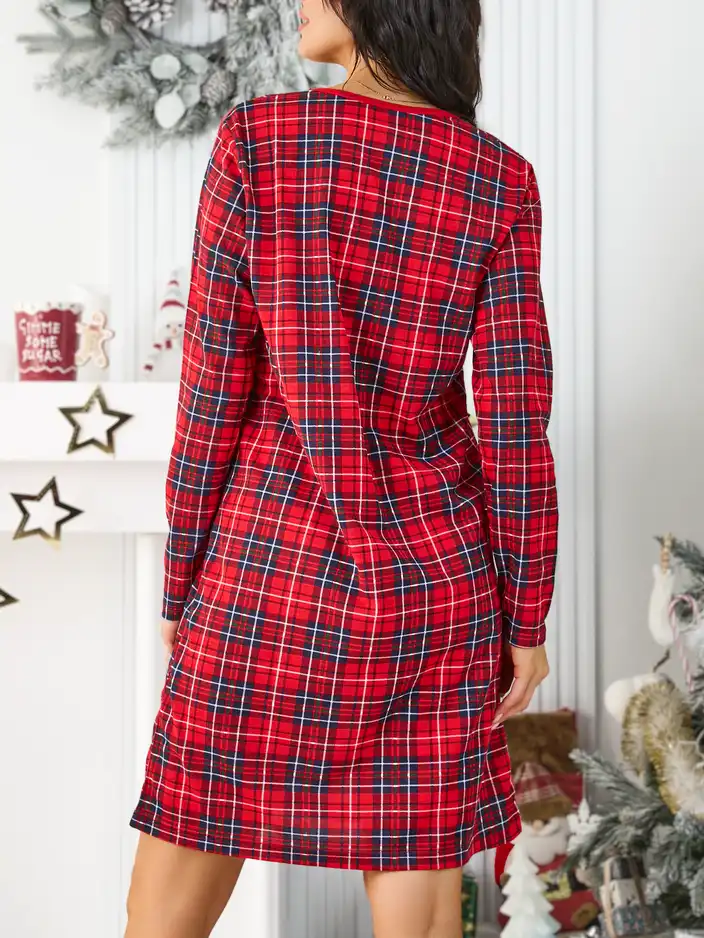 - Dámská noční košile. Model s mírně rozšířeným střihem. Má kulatý výstřih a dlouhé rukávy. Je zdobená károvaným potiskem. POZOR: Přesnost měření (+/-) 1 cm.
