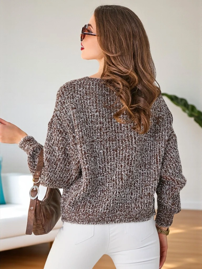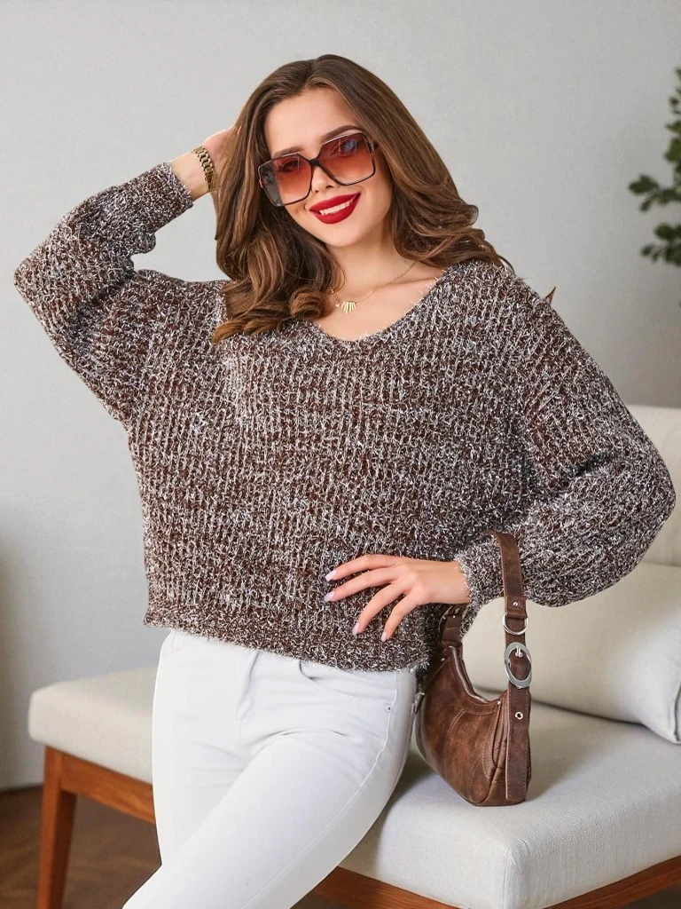 - Tento stylový svetr je podstatou pohodlí a kouzla. Vyroben z měkkého materiálu, svetr má výstřih do V a dlouhé rukávy. Volný střih a lesklá nit dodávají svetr unikátní kouzlo!