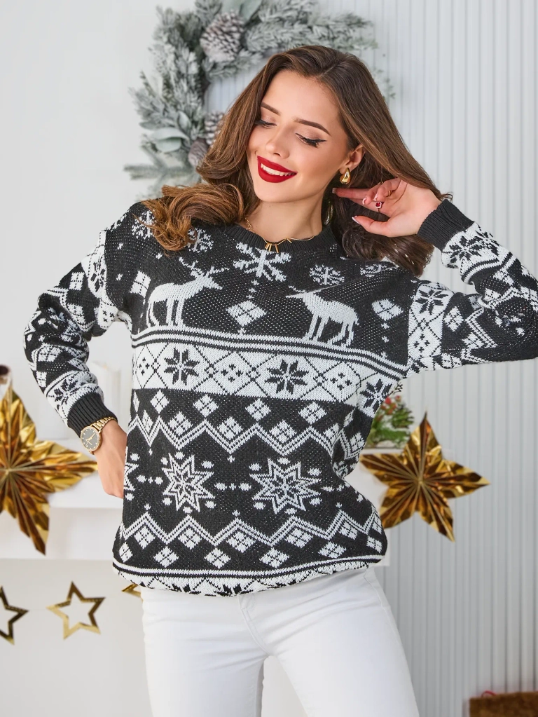 - Tento jedinečný svetr je podstatou pohodlí a kouzla. Vyrobeno z jemného materiálu, svetr má kulatý výstřih a dlouhé rukávy. Slavnostní vzor mu dodává výjimečné kouzlo!