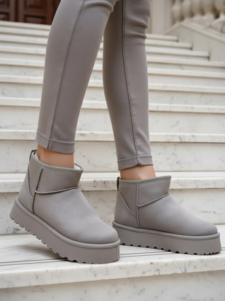- Skvělé ženské zimní sněhové boty na platformě. Vrchní část je vyrobena z ekologického semišového kůže s kožichovou podšívkou. Ideální základ pro zimu!
