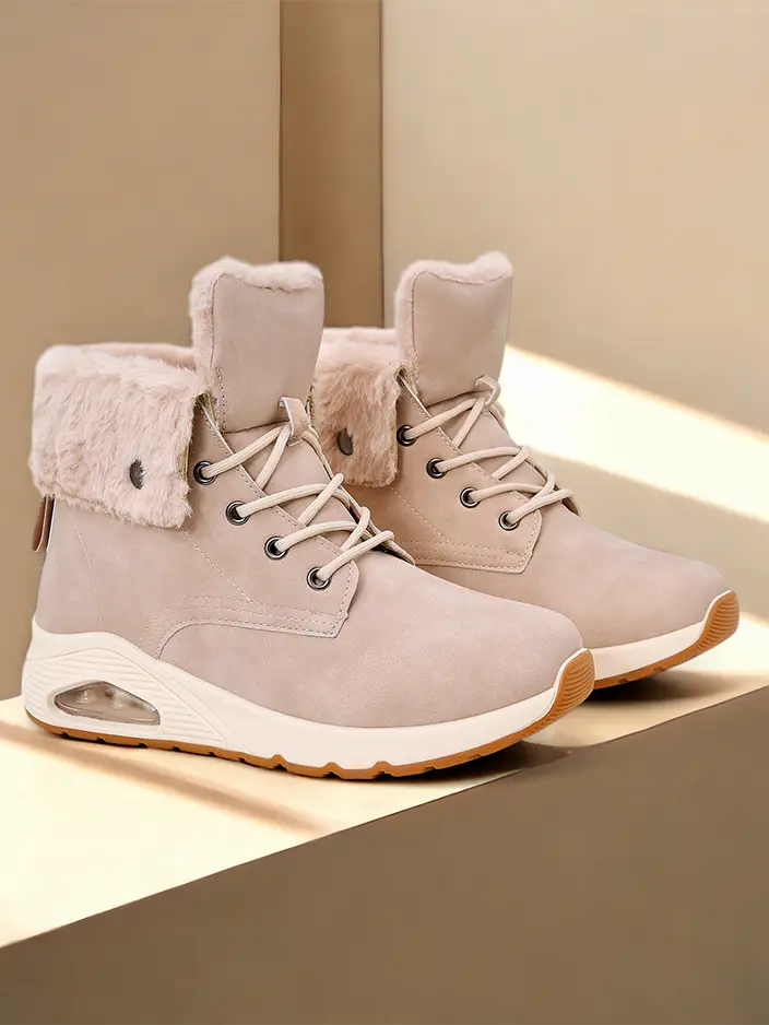 - Dámská izolovaná sportovní obuv ve stylu sneakers s pohodlnou podrážkou. Šněrovací svršek je vyroben z ekologické kůže. Uvnitř je měkký kožíšek. Skvělý doplněk k vašim zimním neformálním outfitům!