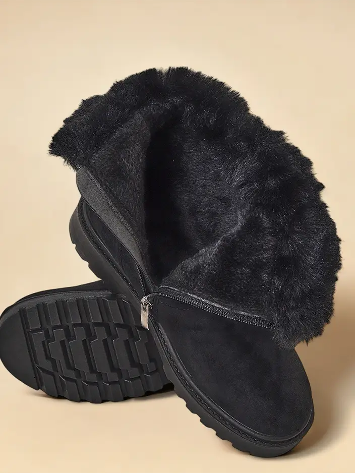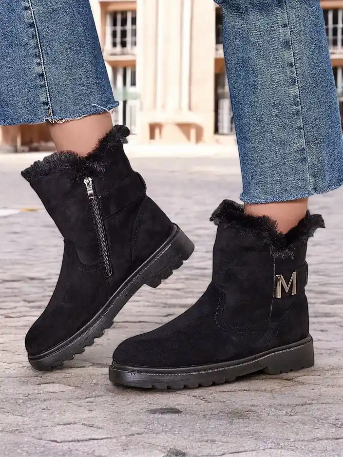 - Skvělé dámské zimní boty ve stylu sněhových bot s plochým podpatkem. Svršek je vyroben z ekologické semišové kůže a vnitřek je zateplený kožíškem. Obuv se zapíná na zip. Perfektní základ pro zimu!