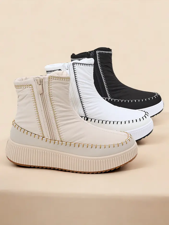 - Dámské sněhové boty s vrškem z materiálu podobného plachtovině. Uvnitř je jemná izolace a obuv je opatřena zapínáním na zip. Ideální pro chladnější období!