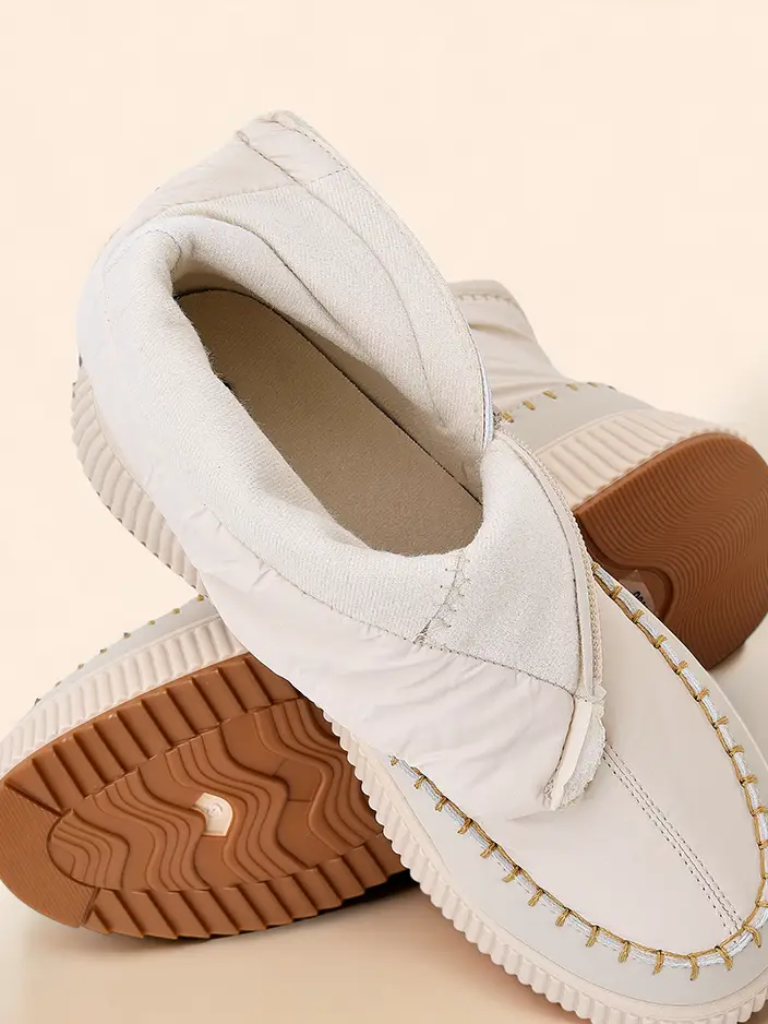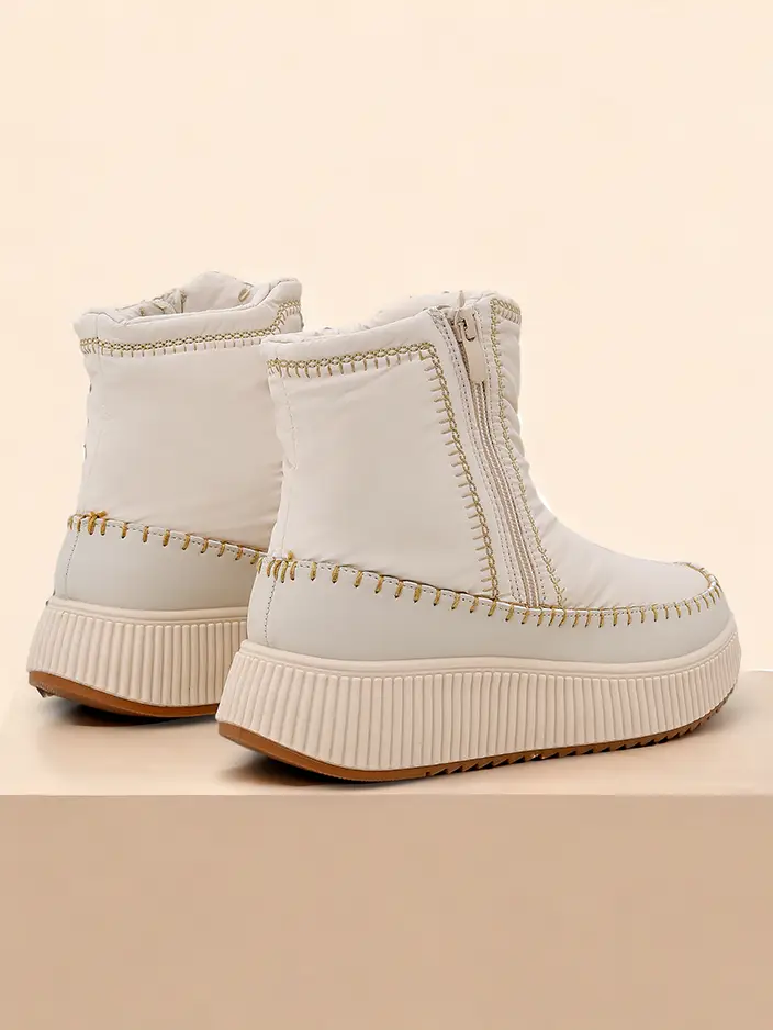- Dámské sněhové boty s vrškem z materiálu podobného plachtovině. Uvnitř je jemná izolace a obuv je opatřena zapínáním na zip. Ideální pro chladnější období!