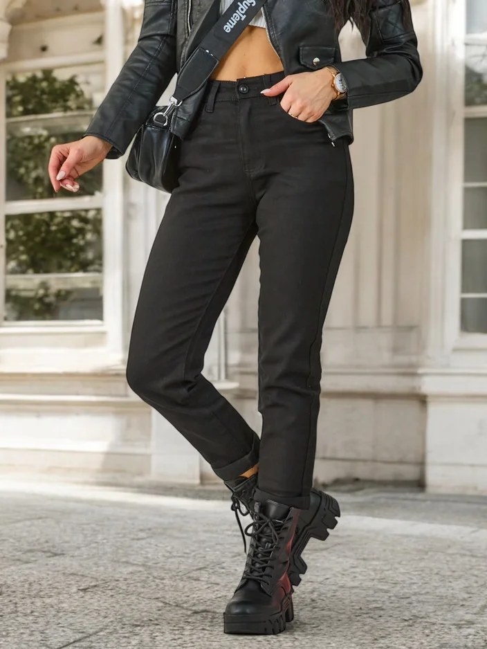• Stylové dámské mom jeans vyrobené z bavlněného materiálu. Model má vysoký pas, zapínání na knoflík a zip a 4 kapsy. Must-have v každém šatníku!