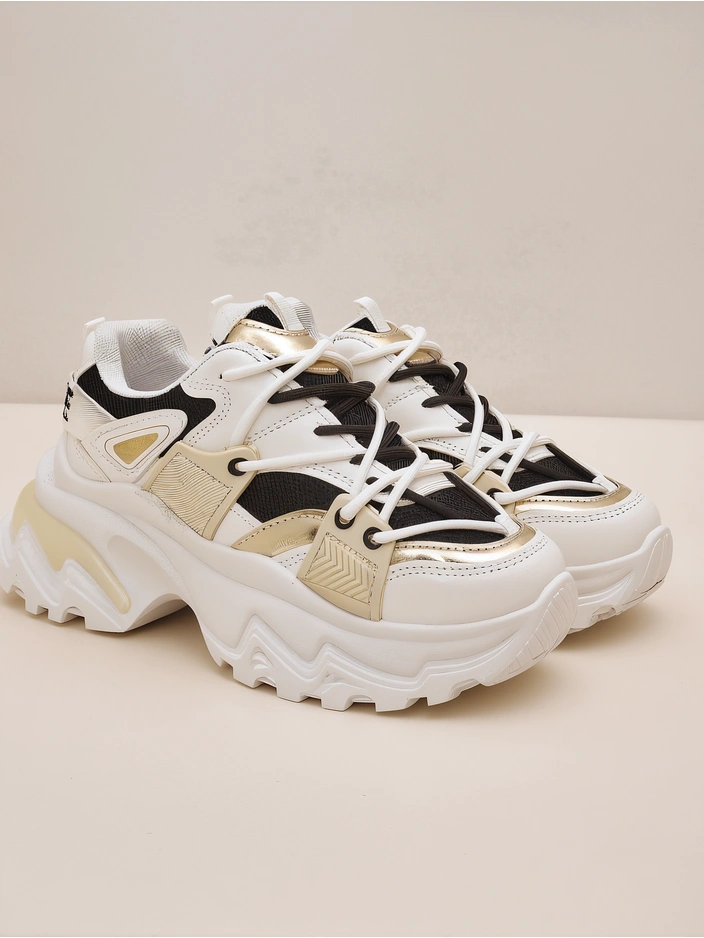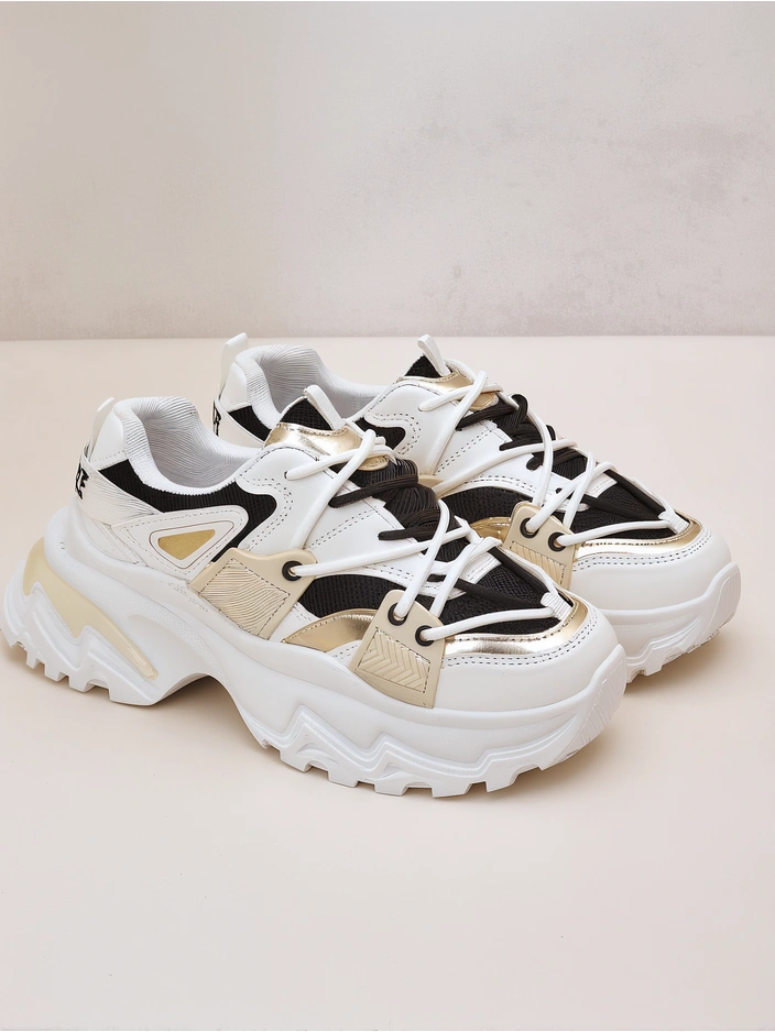 - Dámské sportovní boty ve stylu tenisek s plochou podrážkou. Vyrobeno z ekologické kůže s textilními vsadkami. Stélka je vyrobena z příjemné tkaniny. Skvělý doplněk k vašim každodenním neformálním outfitům!