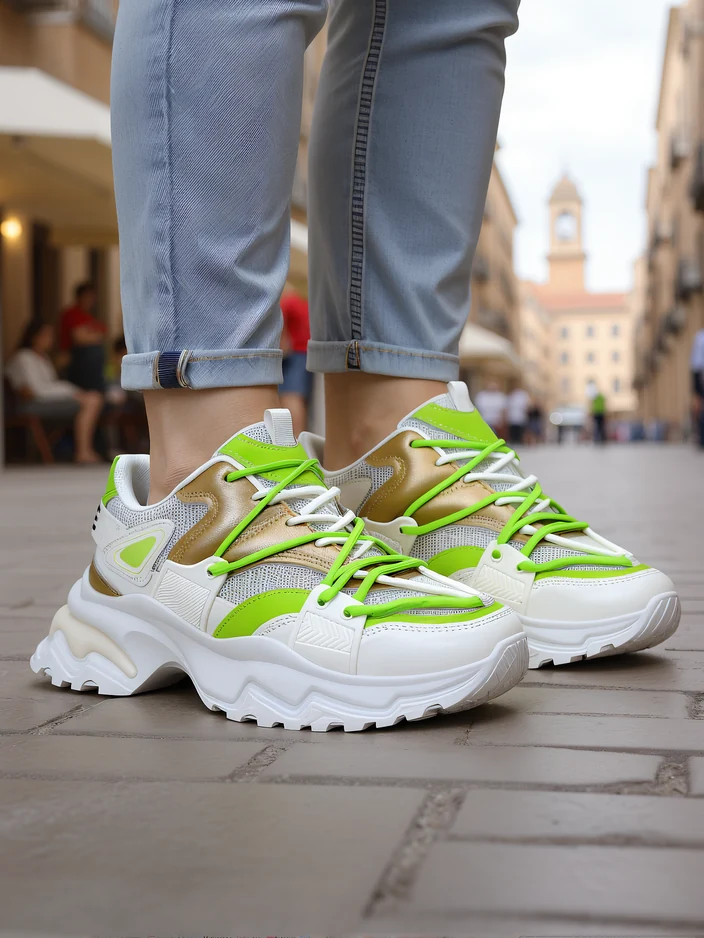 - Dámské sportovní boty ve stylu tenisek s plochou podrážkou. Vyrobeno z ekologické kůže s textilními vsadkami. Stélka je vyrobena z příjemné tkaniny. Skvělý doplněk k vašim každodenním neformálním outfitům!