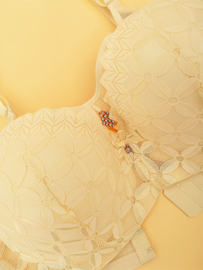 • Elegantní dámská vycpaná podprsenka vyrobená z příjemného měkkého materiálu. Model má dekorativní krajku a odnímatelné, nastavitelné ramínka, se zapínáním na háček na zadní straně. POZNÁMKA: přesnost měření (+/-) 1 cm.