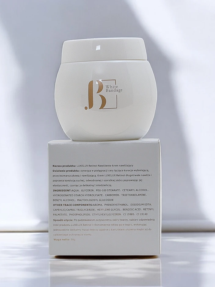 - LUXELUX Retinolová hydratace - krém kombinující zjasňující, protivráskové a zvlhčující vlastnosti. Poskytuje dlouhotrvající hydrataci, zlepšuje elasticitu a stav suché a hrubé pleti, čímž ji činí jemnou a mladistvou.