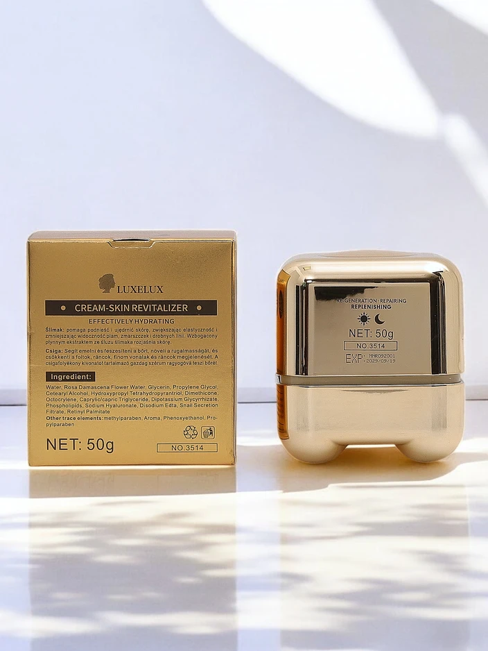 - Revitalizační krém pro pleť. Sliz hlemýžďů: pomáhá pevnit a zlepšit elasticitu pleti, zvyšuje její pružnost a snižuje viditelnost zbarvení. Formule obohacená tekutým extraktem ze slizu hlemýžďů projasňuje pleť.