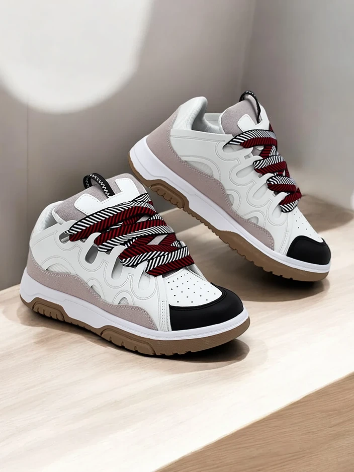 - Trendy dámské sportovní tenisky s tlustší podrážkou, vyrobené z ekologické kůže a ekologického nubuku. Uvnitř je textilní stélka a model má šněrování. Budou skvělým doplňkem každodenních outfitů.