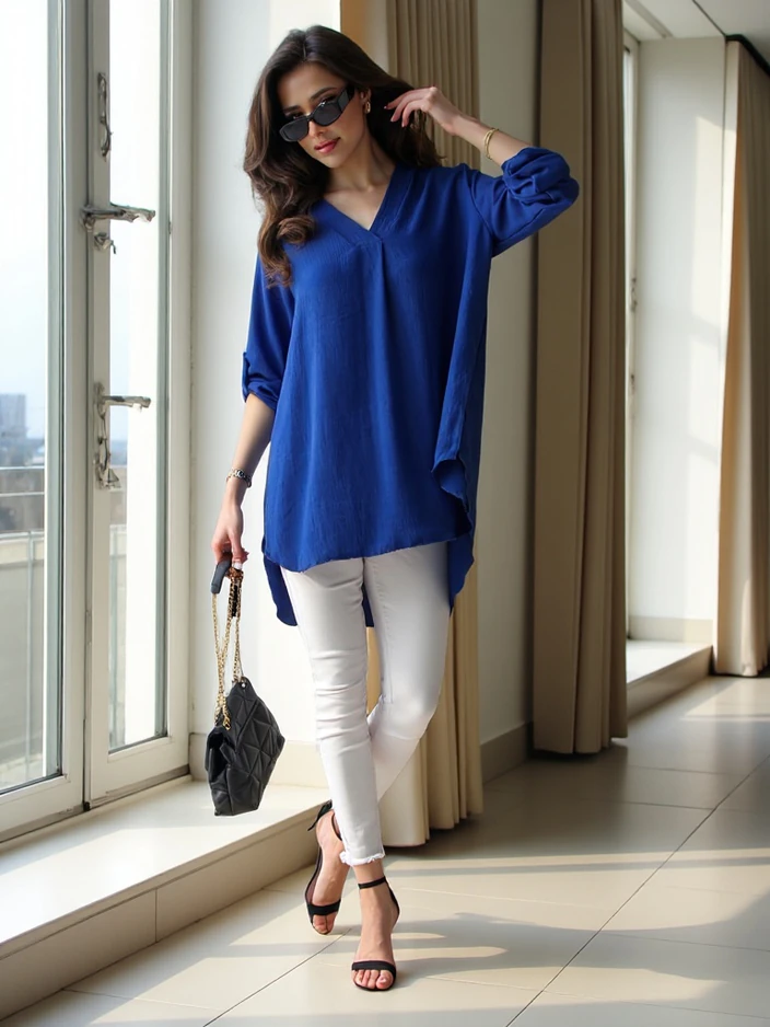 - Klasická dlouhá oversized košile pro ženy vyrobená z příjemného materiálu. Má výstřih do V a dlouhé ohrnuté rukávy. Jednoduchý střih zajišťuje, že sedí na každé postavě! POZNÁMKA: Přesnost měření (+/-) 1 cm.