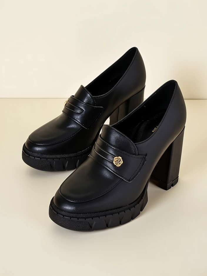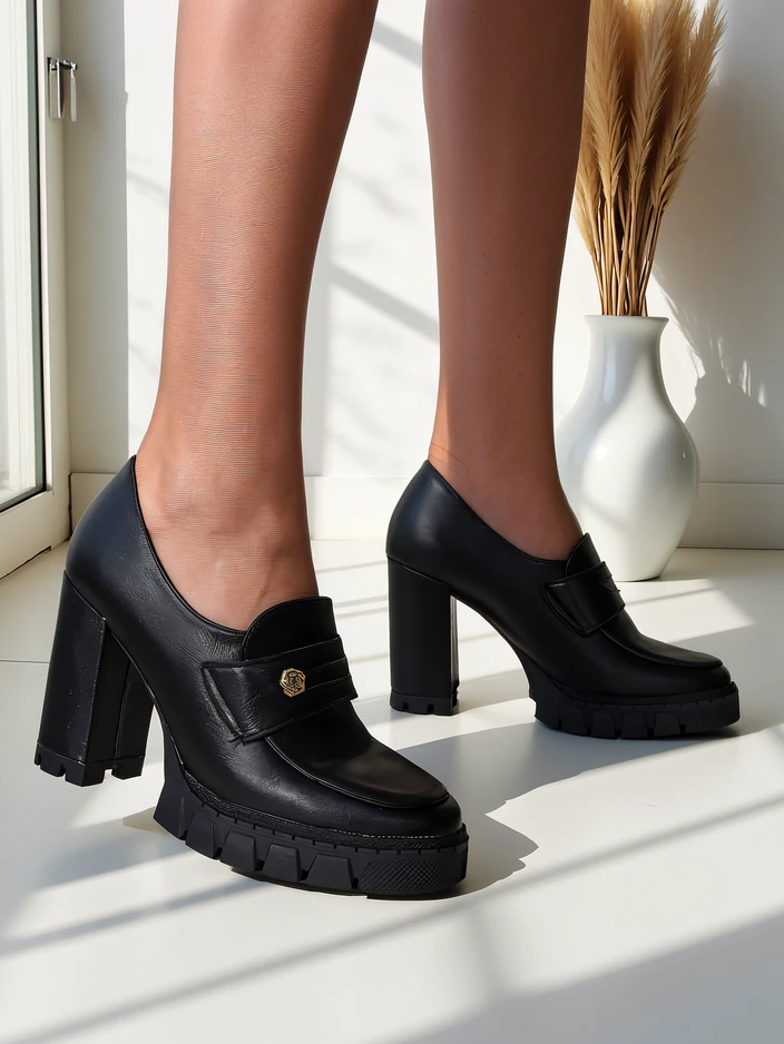• Klasické dámské mokasíny na podpatku. Model je celý vyroben z eko kůže. Obuv má jemnou dekoraci na svršku. Ideální každodenní kousek!