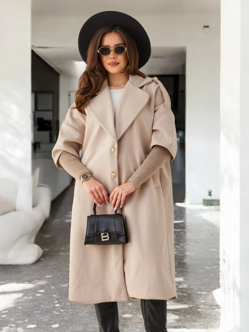• Dlouhý dámský kabát vyrobený z příjemného materiálu. Model má dlouhé rukávy a zapínání na knoflíky. Má podšívku. Ideální návrh na podzim! POZNÁMKA: Přesnost měření (+/-) 1 cm. Měření byla provedena ploše.