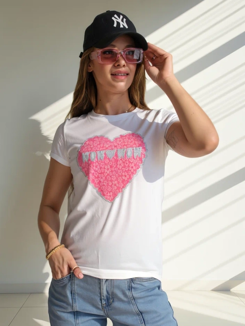 - Originální dámská halenka s kulatým výstřihem, vyrobená z jemné a příjemné tkaniny. Celý kus je zdobený výraznými flitry a krátký rukáv dodává lehkost. Perfektní volba pro vytváření módních a stylových outfitů!