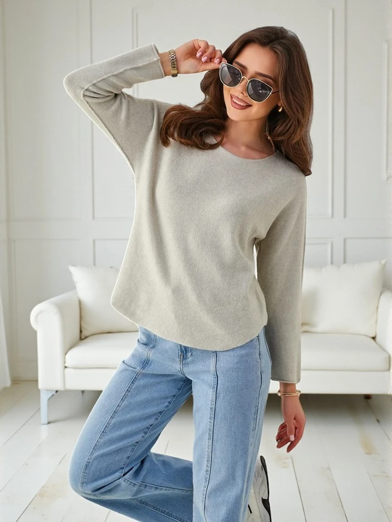 - Damski sweterek wykonany z lekkiej, wiskozowej tkaniny. Posiada długie rękawy i okrągły dekolt, zapewniając komfort i elegancję w codziennych stylizacjach. Dostępny w różnych kolorach, pozwala na łatwe dopasowanie do każdej garderoby!