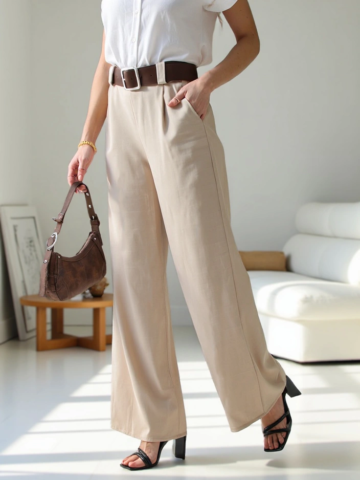 - Úžasné široké kalhoty vyrobené z lehkého materiálu, model má 2 kapsy a elastický pas. Navíc je součástí i opasek. Tohle je nutnost ve vaší skříni! POZNÁMKA: Přesnost měření (+/-) 1 cm.