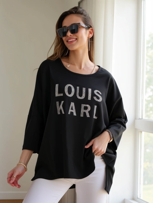 - Originální dámská blůza s kulatým výstřihem, vyrobená z měkké a příjemné tkaniny. Celý kousek je ozdoben jemným nápisem z kamínků a dlouhý rukáv dodává lehkost. Perfektní volba pro vytváření módních a stylových outfittů!