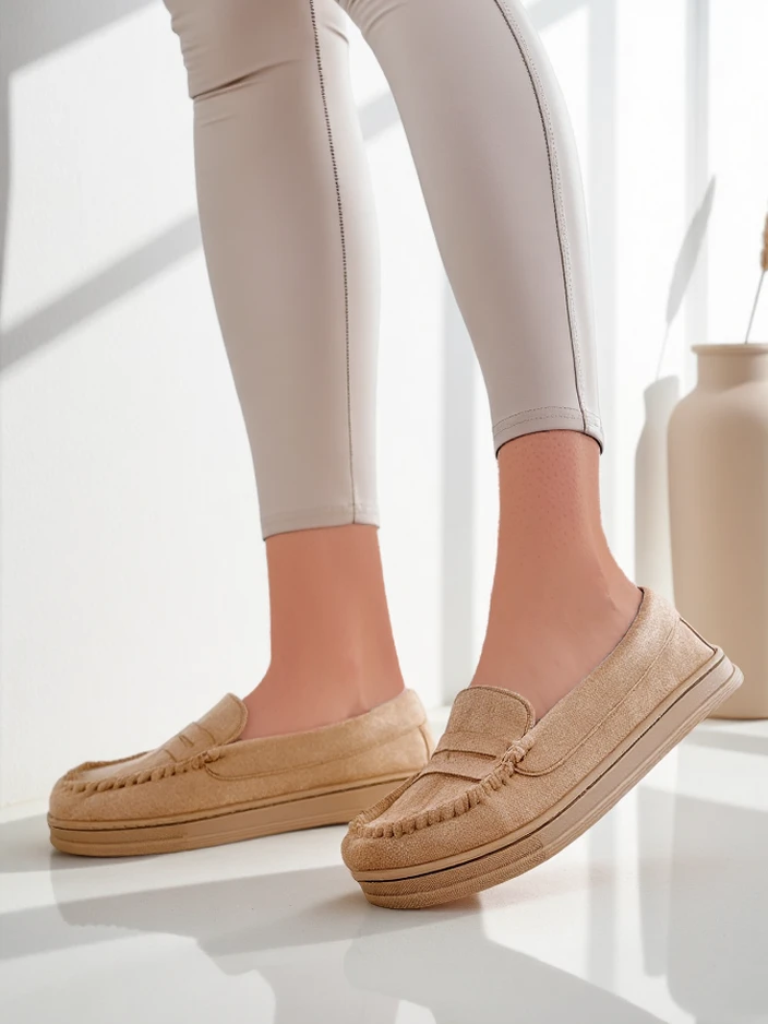 - Trendy dámské mokasíny s plochou podrážkou. Pár je vyroben z ekologické surové kůže. Interiér je podšitý měkkou látkou. Ideální pro každodenní outfity!