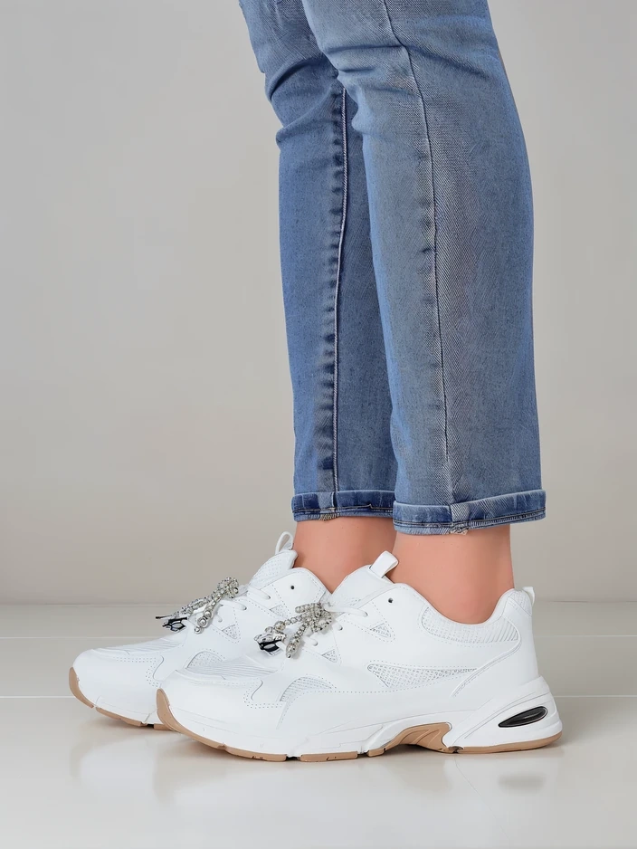 - Dámské sportovní boty vyrobené z eko-kůže a síťoviny. Model na silnější podešvi. Šněrovací svršek. Skvěle se hodí k každodenním stylům! Ozdobené odnímatelným řetězem.