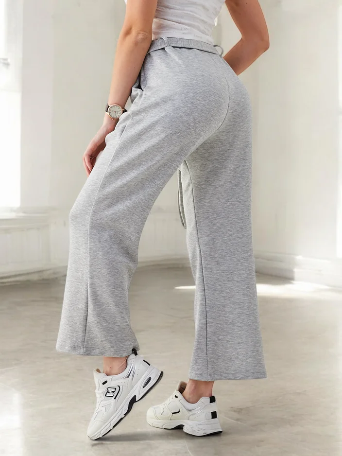 Royalfashion Široké dámské látkové kalhoty s dekoračním páskem