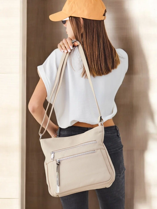 • Dámská kabelka se zipem, vyrobená z ekologické kůže. Model má 1 přihrádku, 3 vnitřní kapsy a 3 vnější kapsy. Dále má odnímatelný, nastavitelný popruh. Ideální pro každodenní použití!