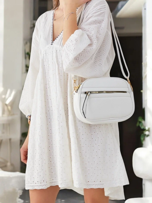 • Dámská oválná taška se zipem, vyrobená z eko-kůže. Model má 3 přihrádky a jednu vnější kapsu. Dále má odnímatelný, nastavitelný popruh. Ideální pro každodenní použití!
