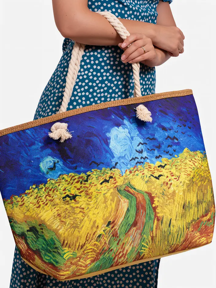 - Stylová látková taška s potiskem. Taška má delší ucha, je na zip a obsahuje 1 kapsu uvnitř. Je skvělá na pláž!
