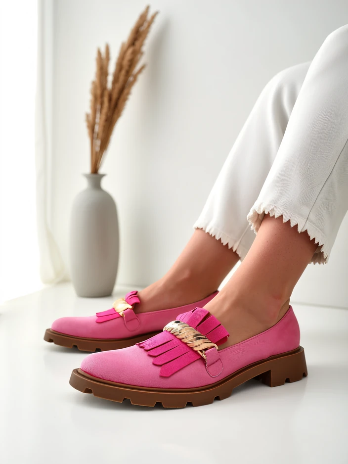 - Krásné dámské ploché mokasíny. Model má ležérní styl a je vyroben z ekokože. Stélka je z ekokoženky. Špička je zaoblená a zdobí ji dekorativní třásně. Ideální základ pro mnoho každodenních outfitů!