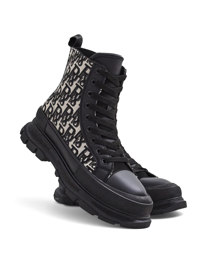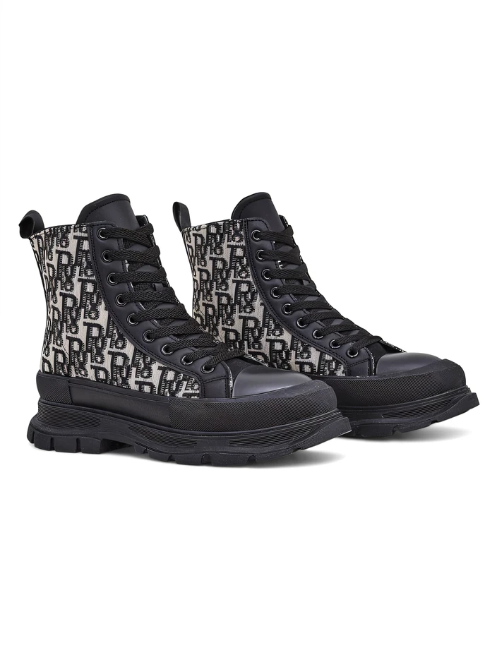 - Úžasné dámské kotníkové boty s plochým podpatkem, vyrobené z eko-kůže a potištěné látky. Interiér je podšitý látkou. Model na šněrování.