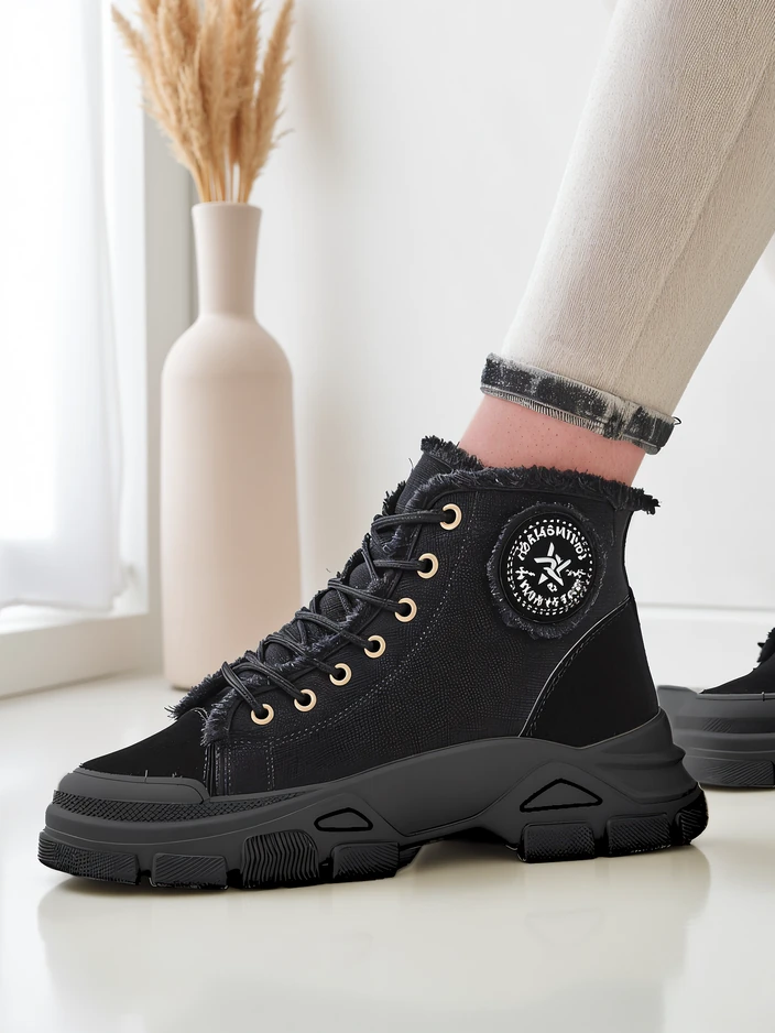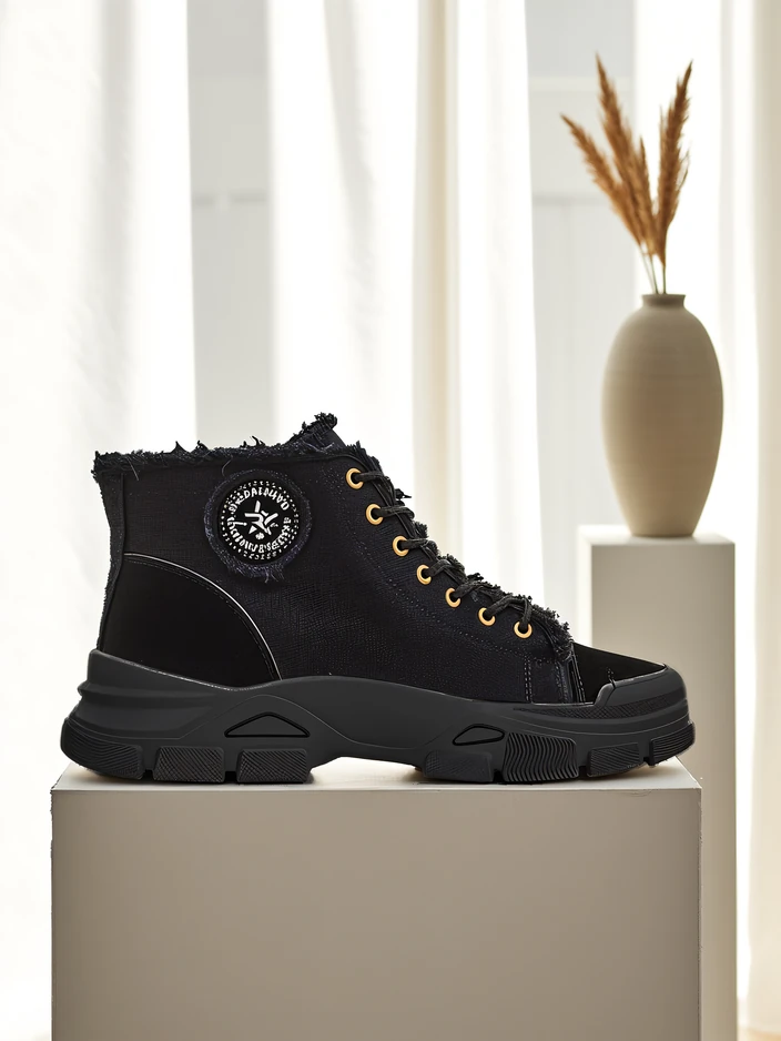• Vysoké sportovní dámské sneakers vyrobené z textilního materiálu. Model na pohodlné podrážce. Svršek je šněrovací. Skvělé pro vytváření ležérních outfitů!