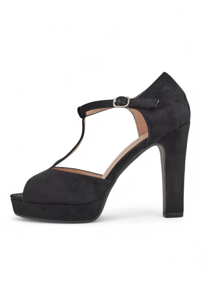- Dámské sandály na nízkém podpatku - ideální volba na horké letní dny. Model je vyroben z ekologického semiše a má ekologickou koženou stélku. Obuv se zapíná na přezku. Kombinace stylu a pohodlí!