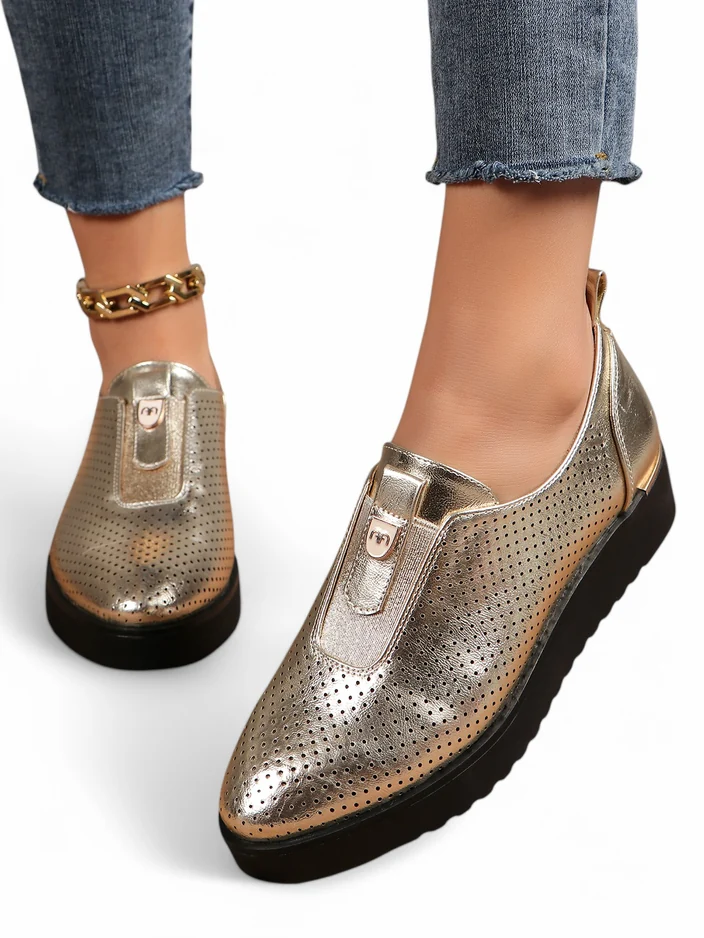 • Dámské perforované boty na silnější podrážce. Svršek typu slip-on je vyroben z eko-kůže, stélka je vyrobena z eko-kůže. Ideální základ pro každodenní outfity!