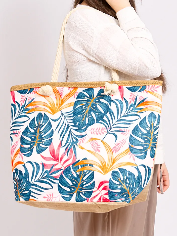 - Stylová taška z látky dokončená potiskem. Taška má delší uši, zapíná se na zip a má 1 kapsu uvnitř. Bude skvělá na pláž!