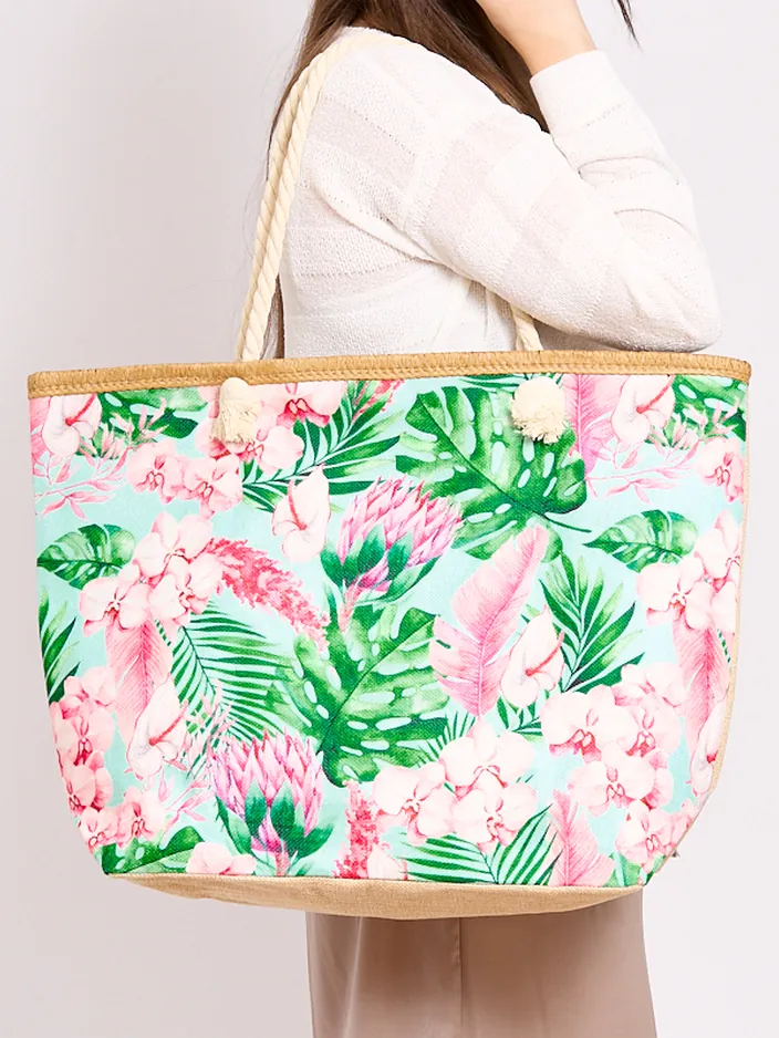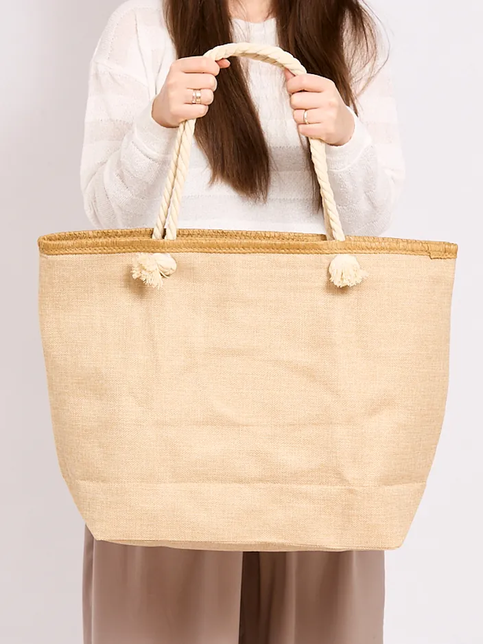 - Stylová taška z látky dokončená potiskem. Taška má delší uši, zapíná se na zip a má 1 kapsu uvnitř. Bude skvělá na pláž!