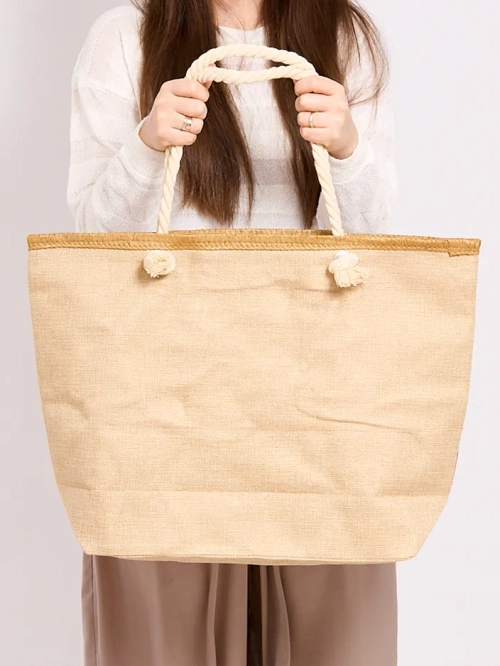 - Stylová taška z látky dokončená potiskem. Taška má delší uši, zapíná se na zip a má 1 kapsu uvnitř. Bude skvělá na pláž!