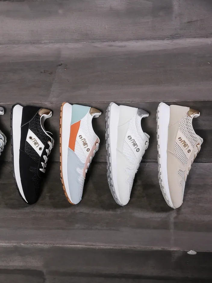 • Dámské tenisky s plochou podrážkou - dokonalá kombinace stylu a pohodlí. Obuv vyrobená z eko kůže a textilie. Model na šněrování, s textilní stélkou. Ideální pro aktivní jedince!